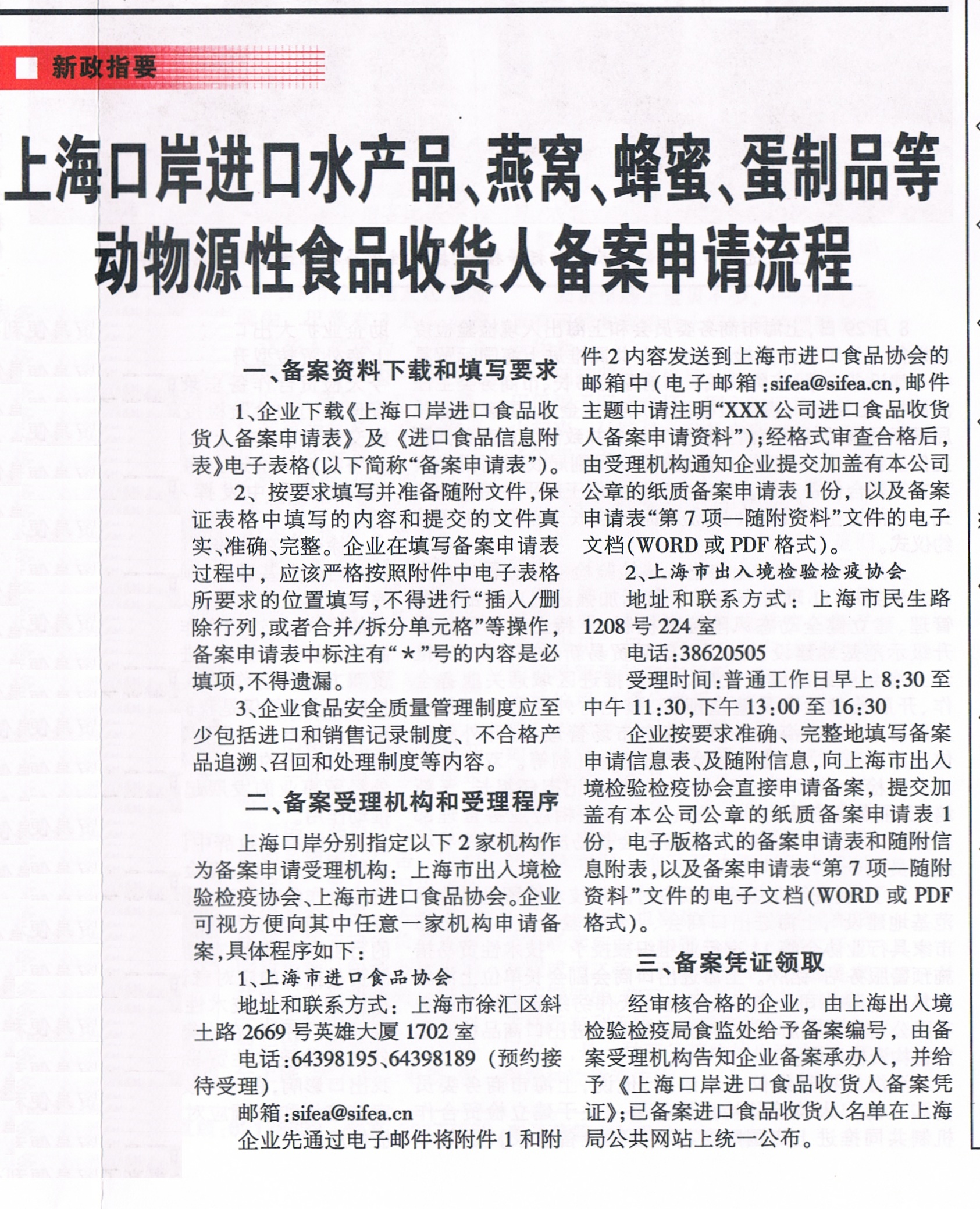 上海口岸进口水产品、燕窝、蛋制品等动物源性食品收货人备案申请流程